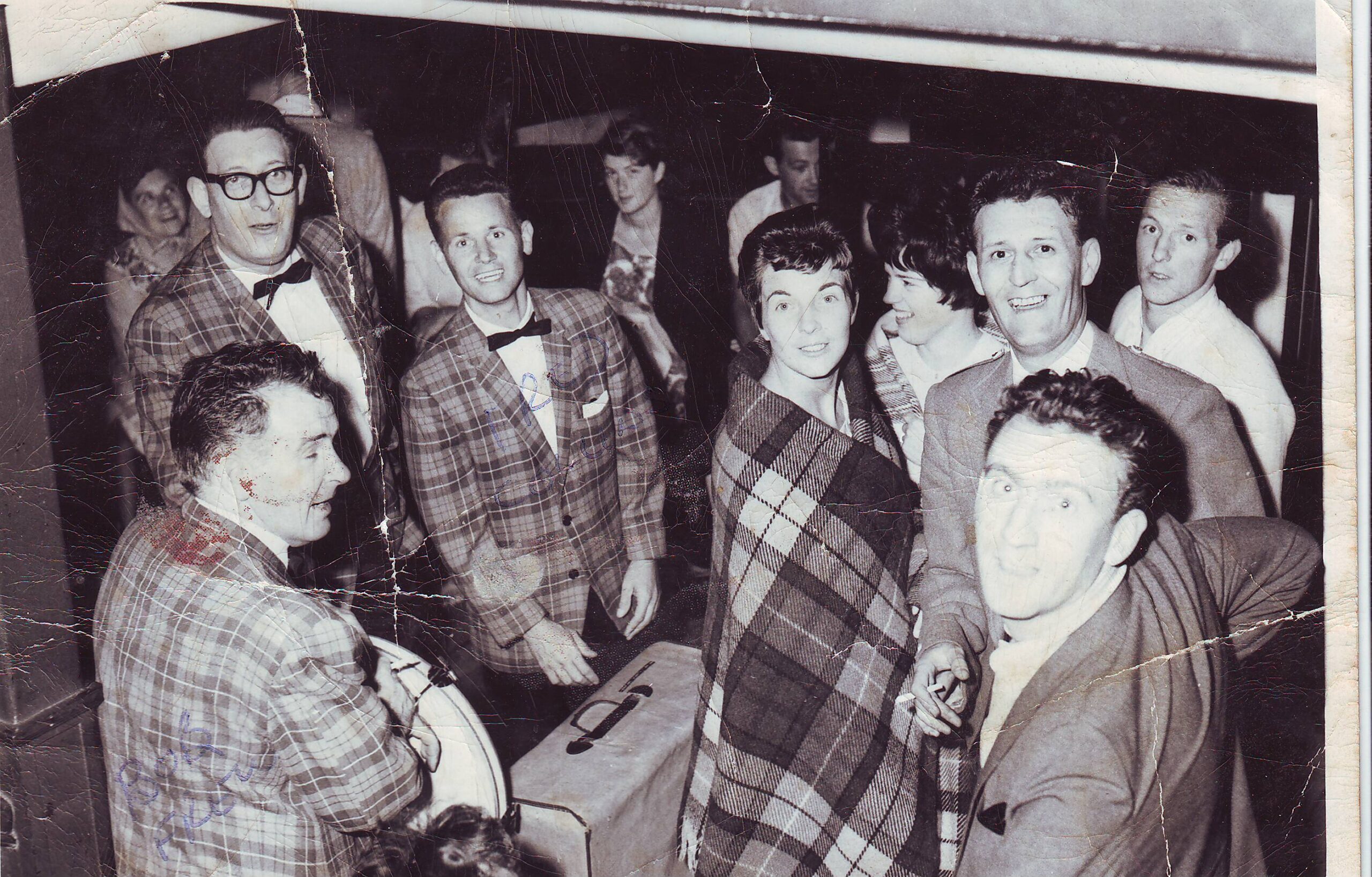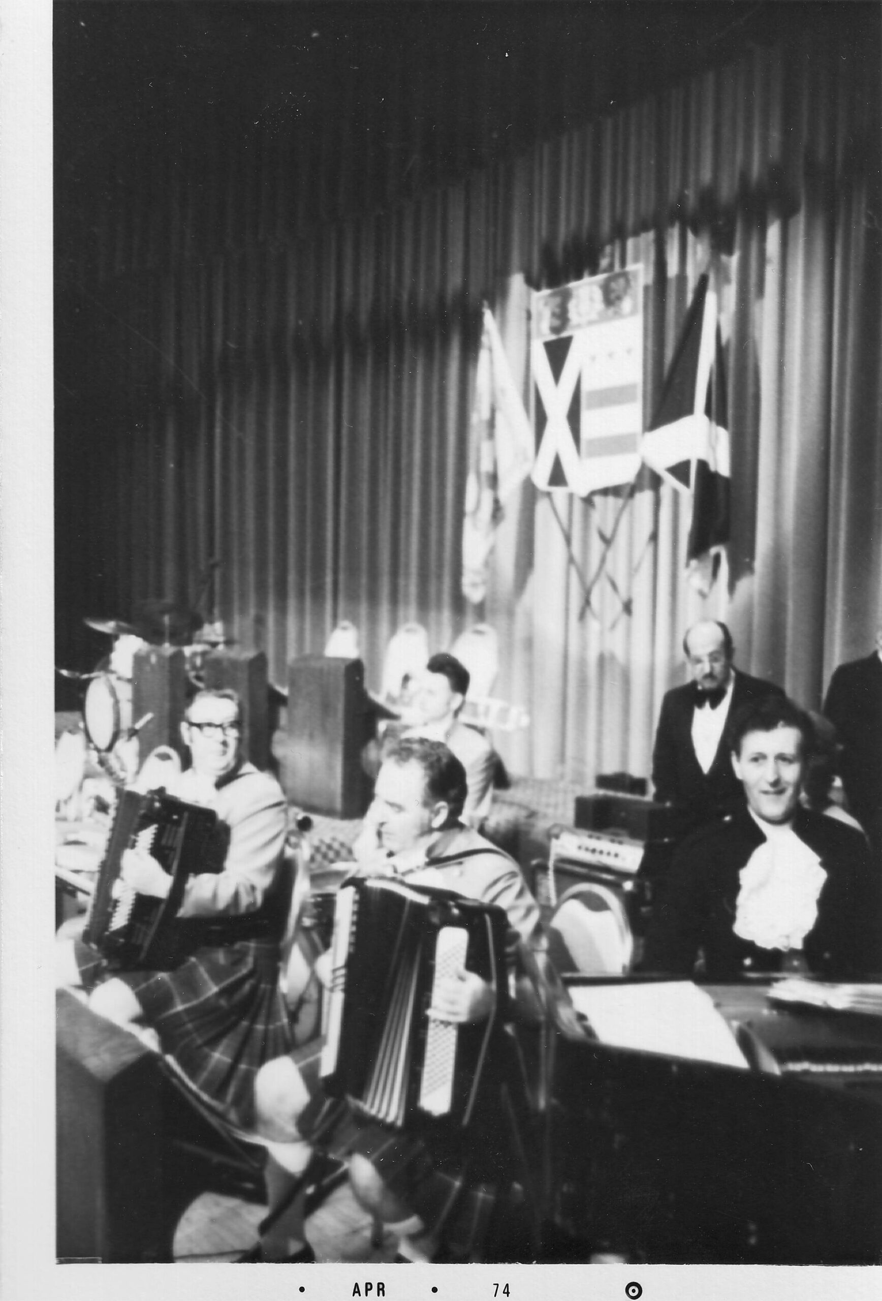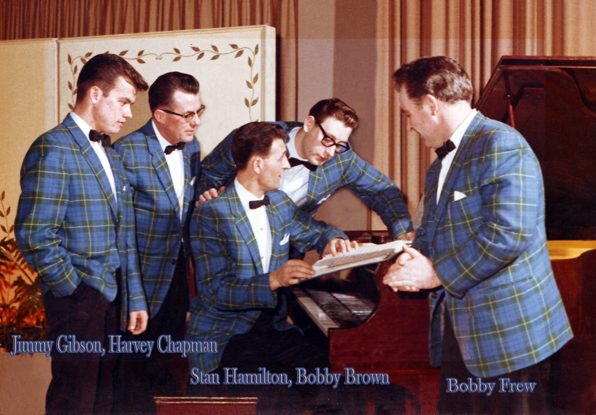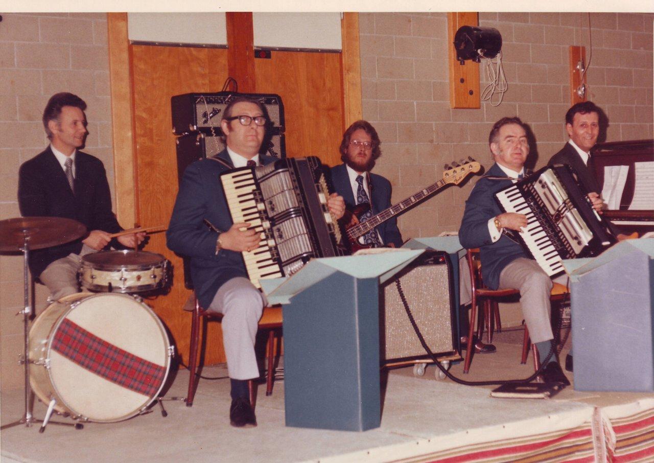 Bobby Frew, BB, Harvey Chapman (bass) Michael Noble, Jimmy Gibson (drums) dance in the 1960s – where is Stan?