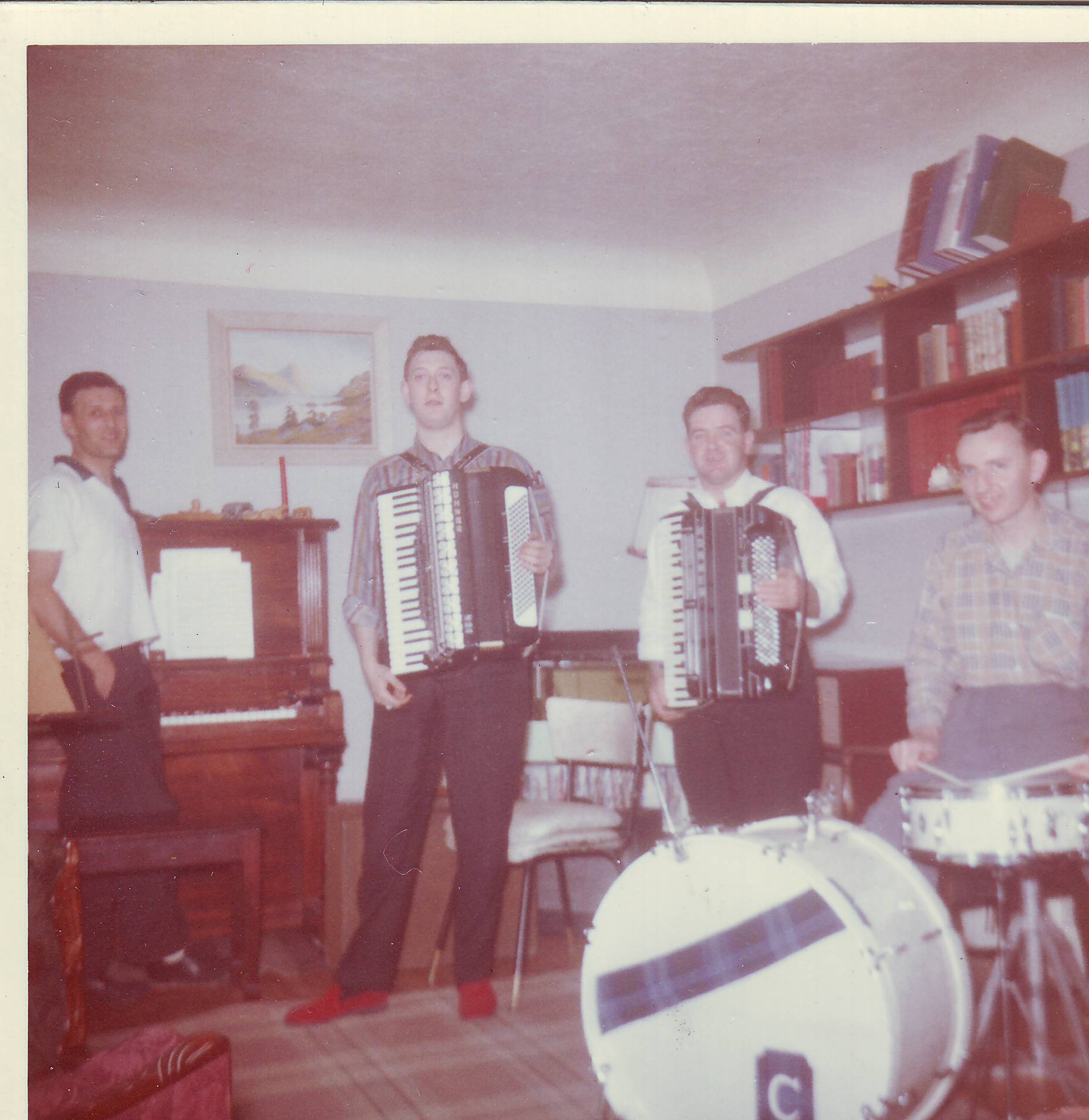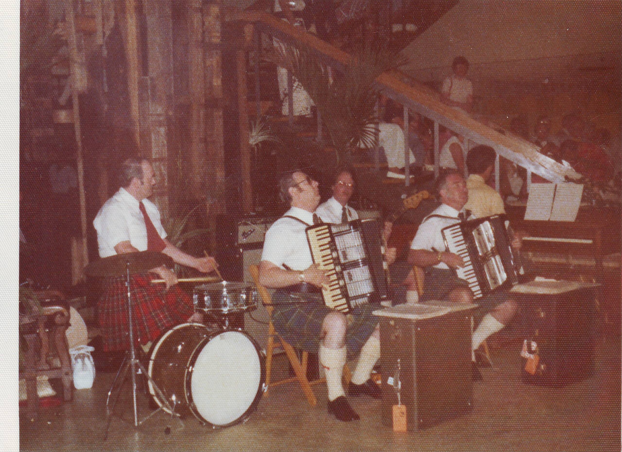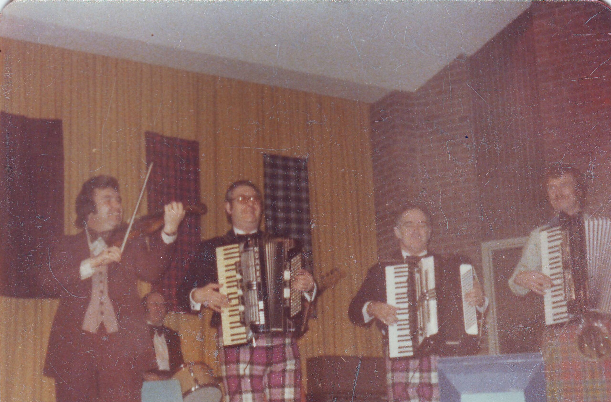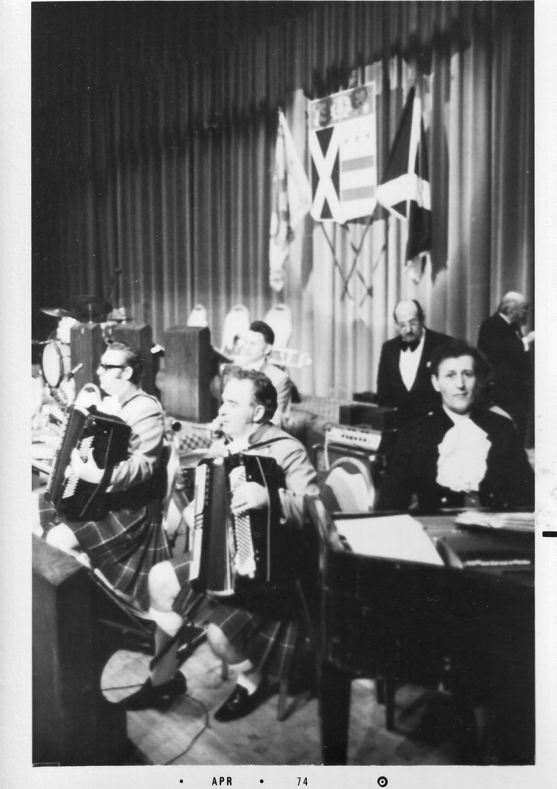 Bobby Frew, BB, Harvey Chapman (bass) Michael Noble, Jimmy Gibson (drums) dance in the 1960s – where is Stan?
