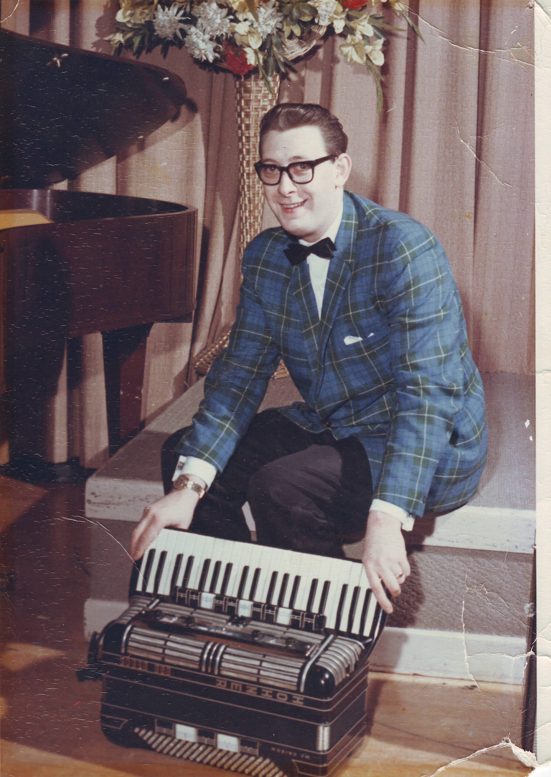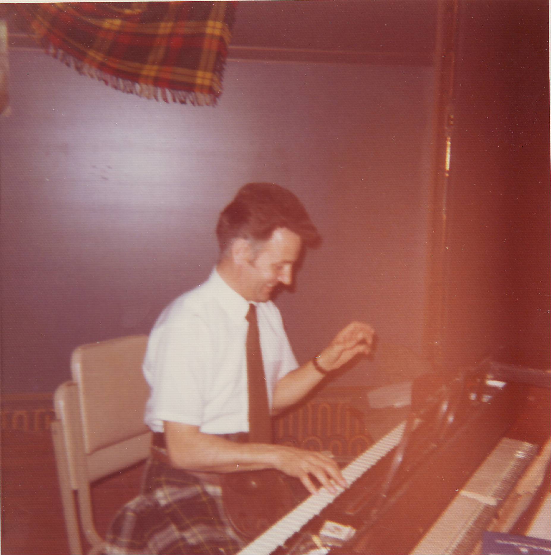 Fred at piano playing the only tune he knows in A minor! 1973